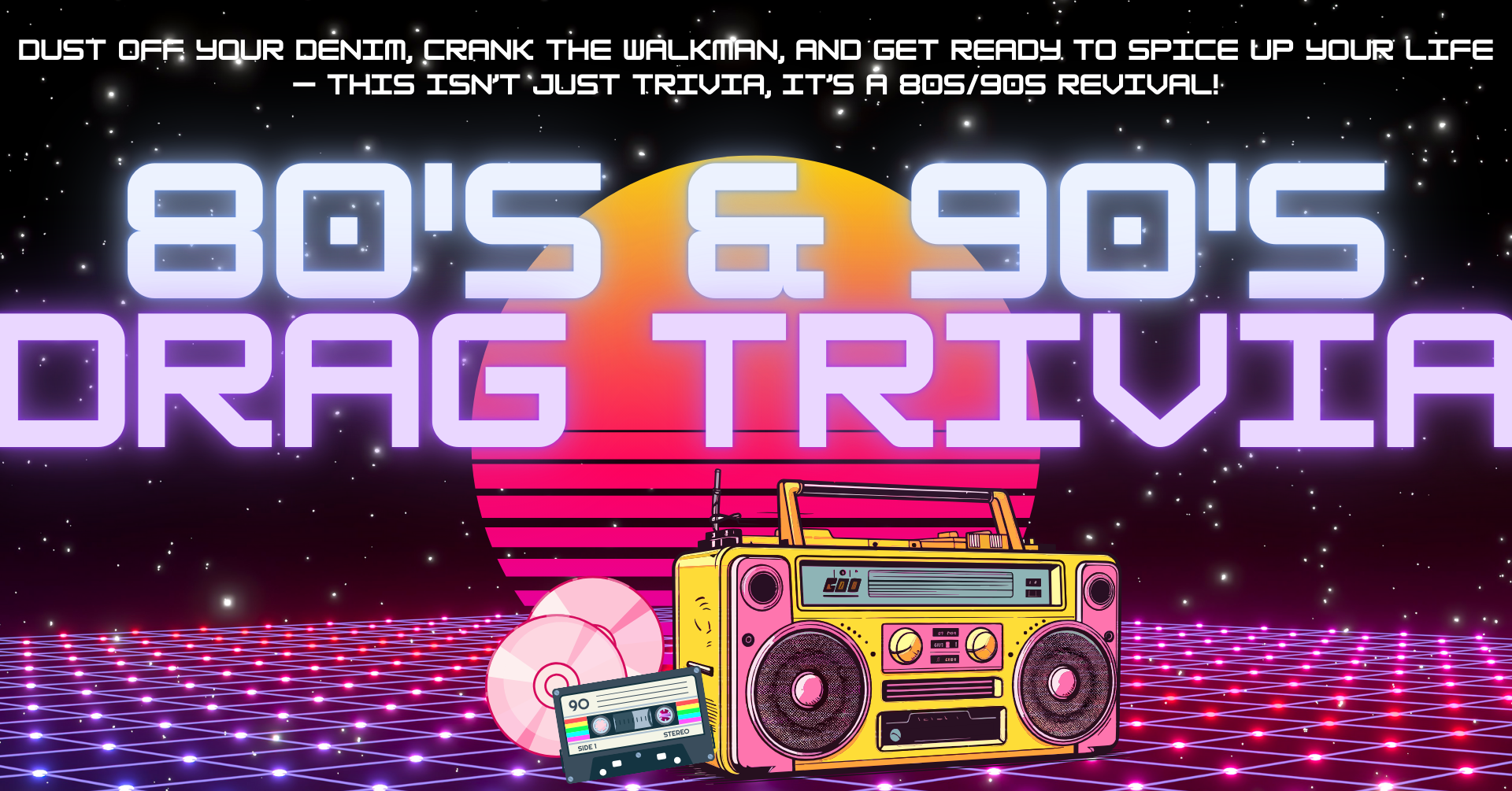 Rewind the clock and relive the decades that gave us big hair, bold fashion, and absolute bangers. This is drag trivia with a retro twist—where camp meets nostalgia, and your memory gets a workout worthy of an aerobics VHS.
